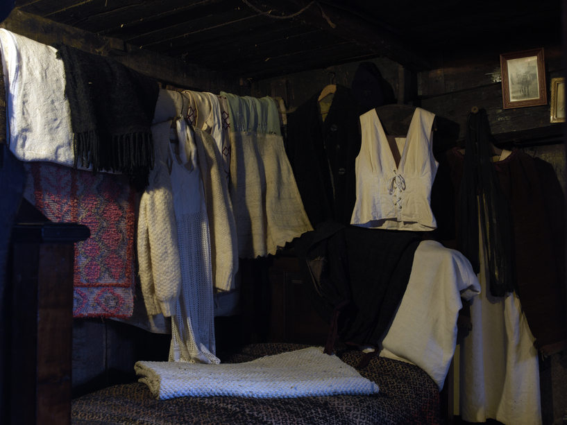 Entrando, á dereita, atópase a alcoba. Nesta estancia durmía o matrimonio máis vello da casa. Nunha casa podían convivir ata 4 xeracións e ser máis de 20 persoas.